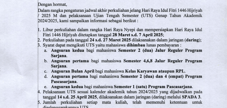 Akhir Perkuliahan Jelang Idul Fitri dan Pelaksanaan UTS Semester Genap 2024 / 2025 2025-05-26 By: admin On: May 26, 2025 In: BERITA